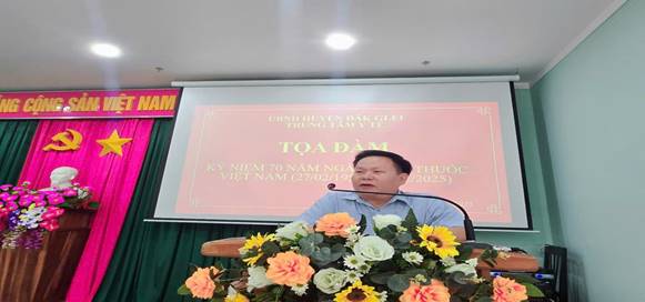 Tại buổi tọa đàm, đội ngũ viên chức, người lao động lắng nghe thư của Hồ Chủ tịch gửi Hội nghị cán bộ y tế năm 1955; ý nghĩa và sự ra đời Ngày Thầy thuốc Việt Nam; quá trình hình thành và phát triển của ngành Y tế Việt Nam, ngành Y tế tỉnh Kon Tum và ngành Y tế huyện Đăk Glei qua 70 năm.